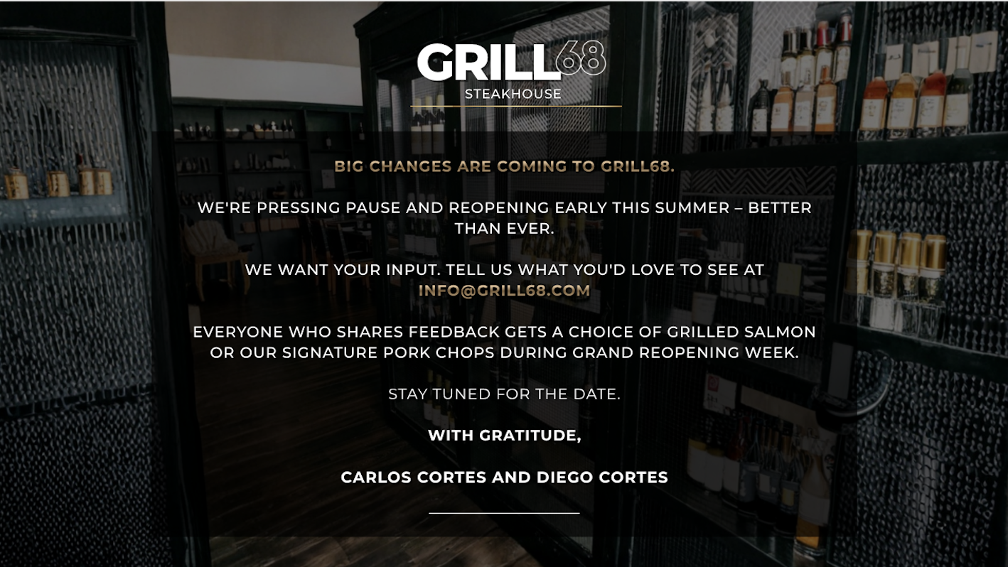 Grill 68 welcomes you and yours with open arms and an award-winning menu that can’t be beat.
